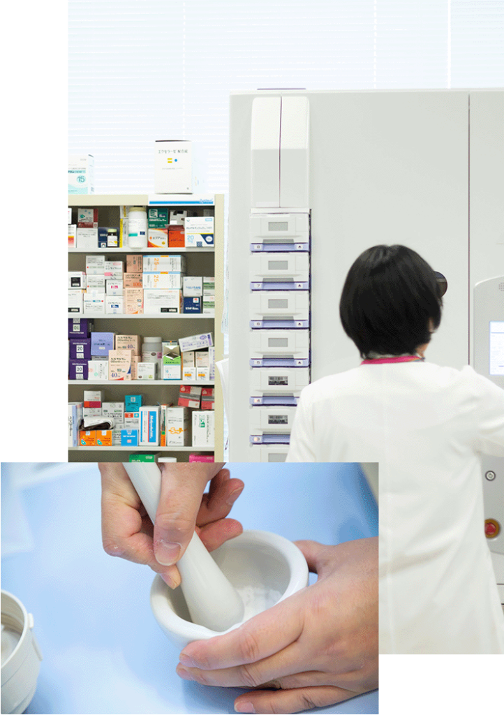 処方せんどおりに服用されているかを確認すると同時に、飲みやすい剤形や大きさかも伺い、一人一人に合った調剤に取組みます。
